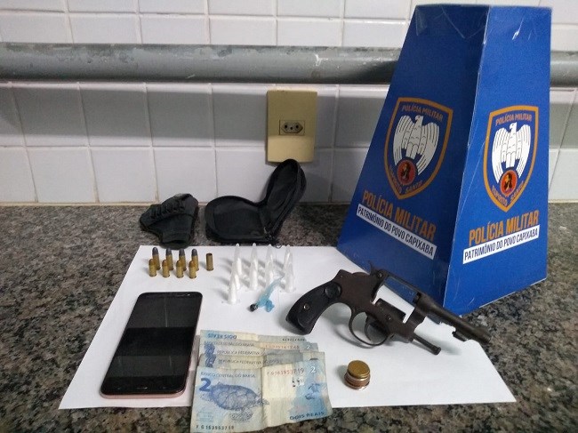 O suspeito tentou fugir da guarnição, mas foi alcançado e abordado. Em posse do menor foram encontradas ainda 13 pinos de cocaína, uma bucha de haxixe, oito munições calibre 32 intactas e uma deflagrada. O suspeito foi encaminhado para a delegacia local juntamente com os materiais apreendidos.