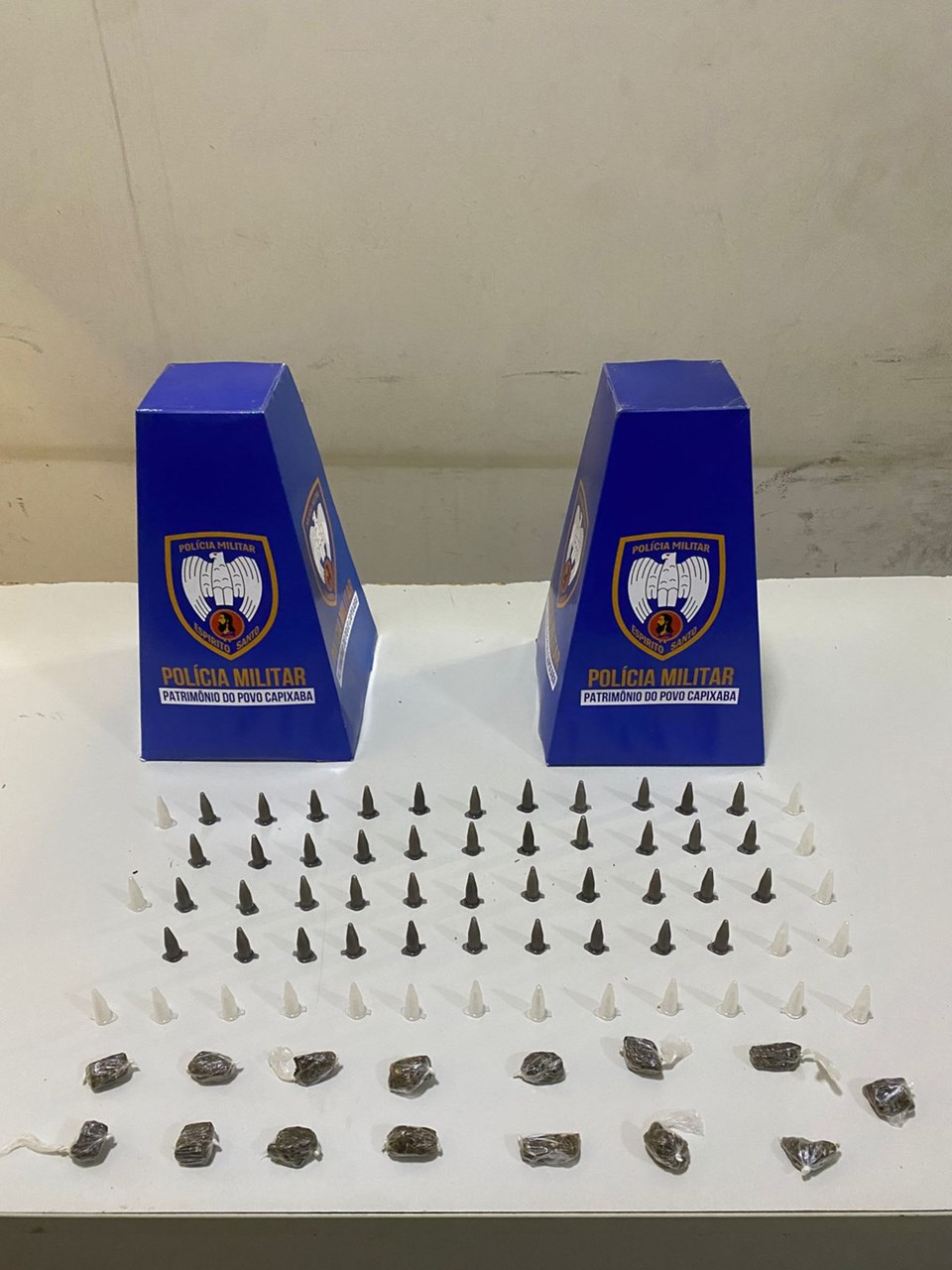 Ainda na manhã do dia 13 de março, durante varredura realizada no bairro Santa Mônica, policiais militares localizaram uma sacola contendo 63 pinos de cocaína e 15 buchas de maconha. O material foi recolhido e entregue na Delegacia de Polícia para as providências cabíveis.