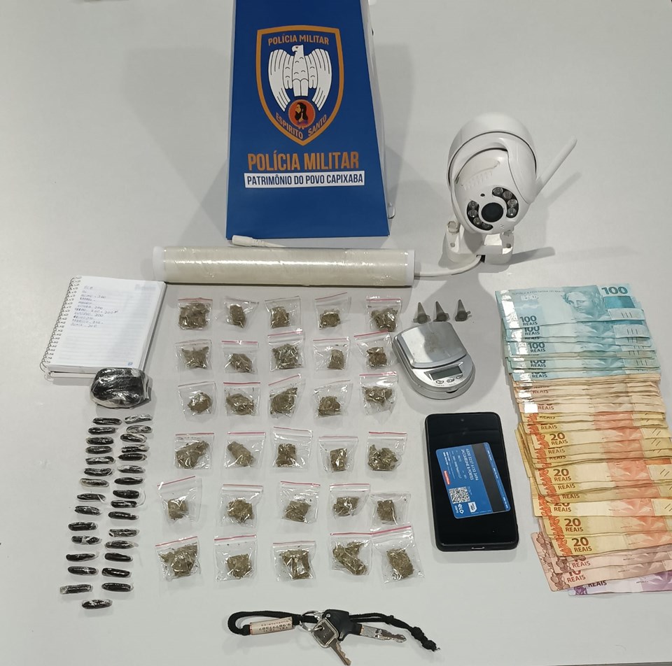 Ainda no domingo, no bairro Muquiçaba, equipes da Força Tática detiveram um indivíduo de 28 anos, após monitoramento que confirmou seu envolvimento com o tráfico de drogas. Com ele, foram localizados uma tira de maconha, uma bucha de maconha e R$ 70,00. Em buscas na residência indicada pelo detido, os policiais encontraram 1 pedaço de maconha, 13 buchas de maconha e R$ 1.860,00, totalizando R$ 1.930,00 apreendidos.