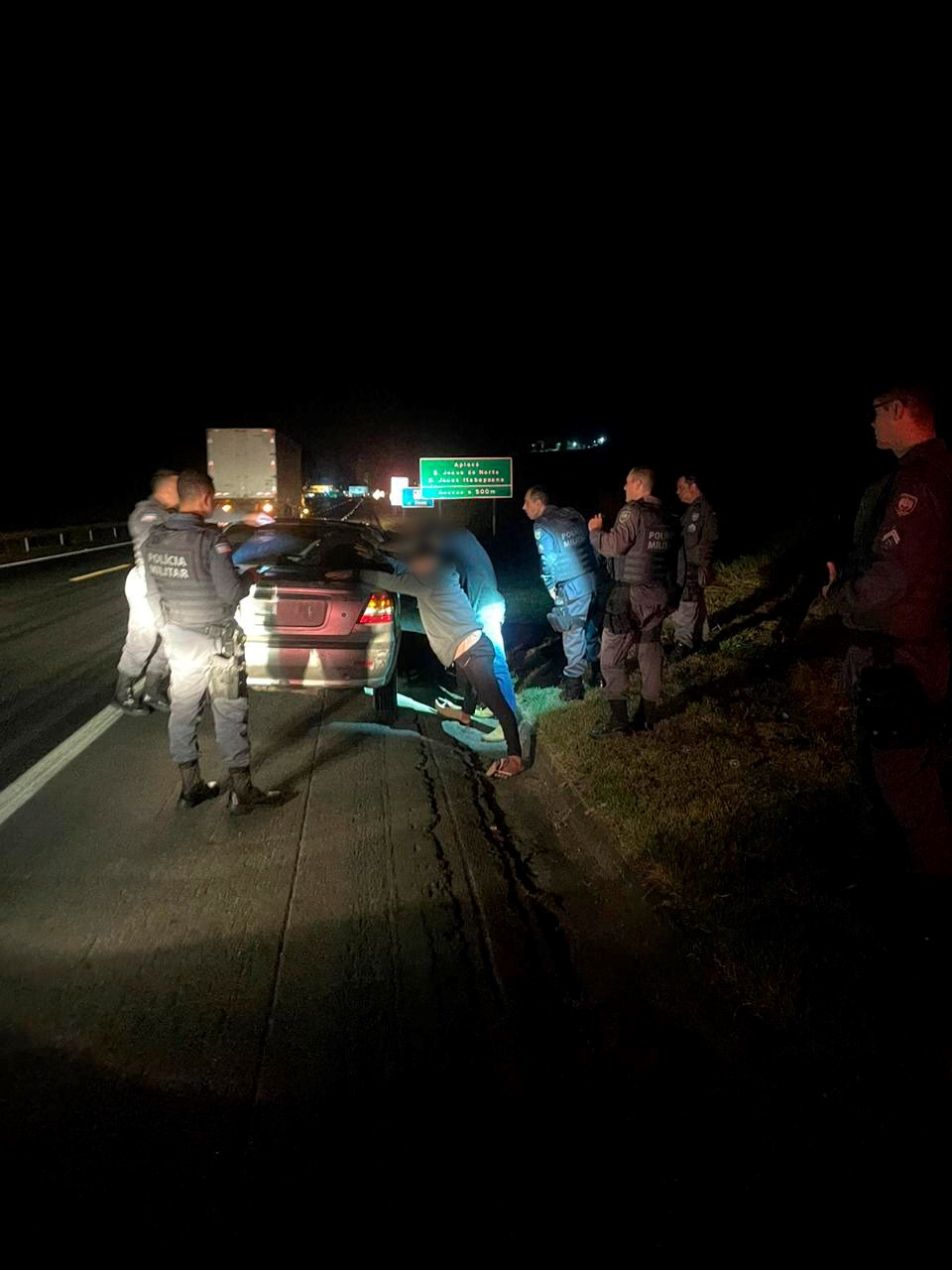 Os três indivíduos foram conduzidos à 7ª DRCI. O veículo foi guinchado e permaneceu à disposição da autoridade competente.