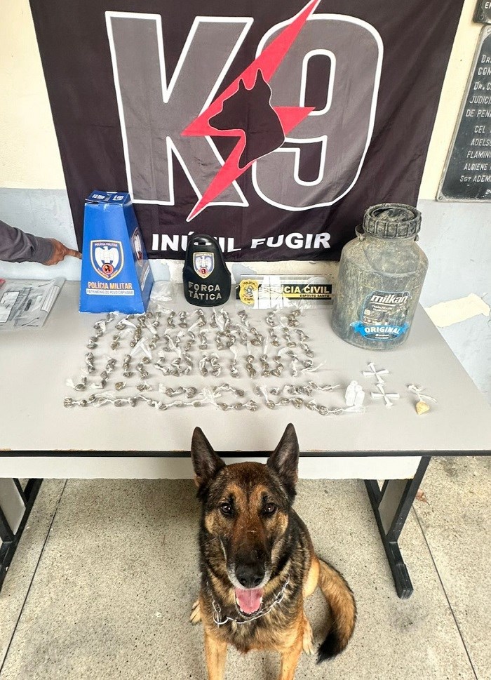 Durante a busca pessoal foram encontradas dentro de uma carteira de cigarro, que estava em posse do suspeito, 31 pedras de crack, uma porção de cocaína e maconha, além de R$50,00 em espécie. O indivíduo foi conduzido ao DPJ de Nova Venécia e entregue junto com o material. A motocicleta foi removida ao pátio conforme, ficando à disposição da autoridade competente.
