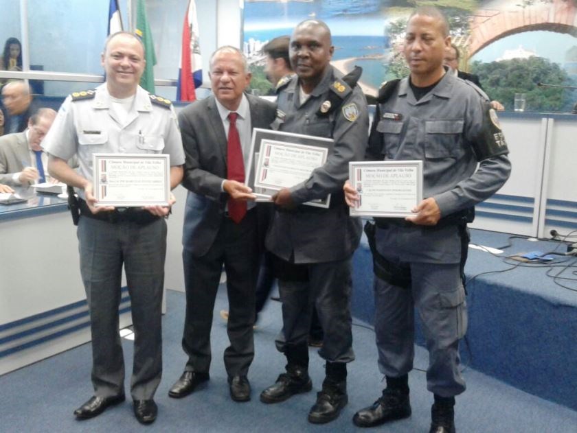 Na manhã desta quarta-feira (03), o 4º Batalhão da Polícia Militar recebeu uma homenagem de moção de aplauso da Câmara Municipal de Vila Velha. A condecoração foi entregue ao comandante da Unidade, o tenente-coronel Sebastião Biato Filho. A homenagem foi em razão dos 37 anos de serviços prestados pelo 4º Batalhão à comunidade canela verde.
