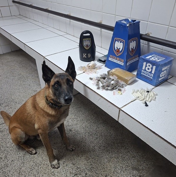 Durante verificação de denúncia anônima repassada pela seção de inteligência do 6º BPM, a equipe de Força Tática K9 prosseguiu ao local indicado, onde o cão policial Apollo localizou um ponto utilizado para o embalo de drogas. No interior do imóvel, foi detido um indivíduo em flagrante delito por tráfico de entorpecentes.