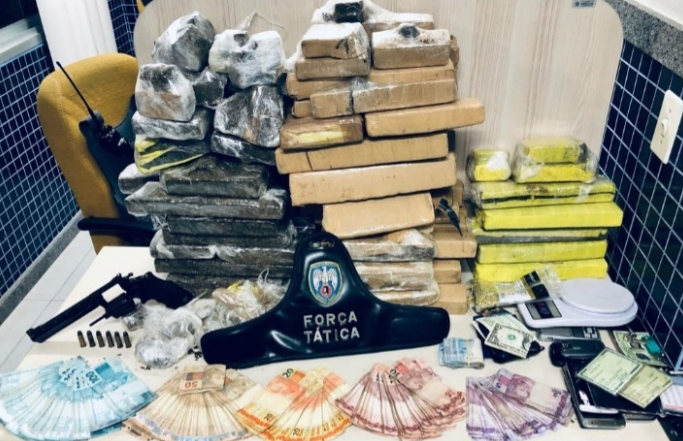 No local havia ainda uma barricada feita com toras de madeira atrás de um portão de onde via-se um tonel e uma mesa, sobre a qual havia grande quantidade de entorpecente. Foram apreendidos 38 Kg de maconha dívidas em 34 pedaços de tamanho e pesos diferentes e 48 tabletes inteiros de tamanhos e pesos diferentes, 07 celulares, 02 balanças de precisão, e material plástico para embalo.