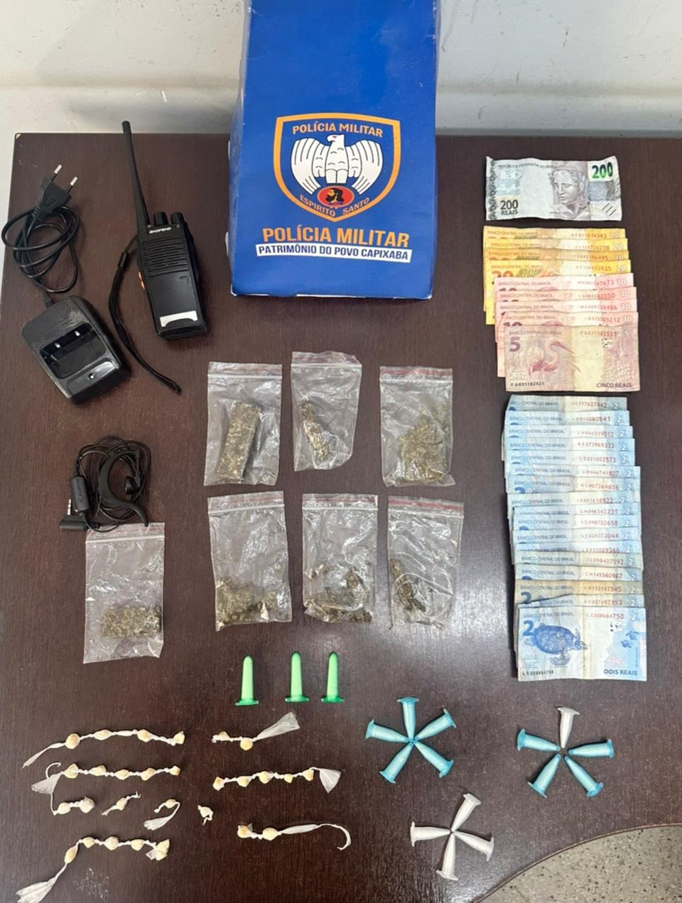 Durante a manhã, no bairro Lameirão, equipes da Força Tática abordaram um indivíduo após denúncia de tráfico de drogas, sendo apreendidos 17 pinos de cocaína, 07 unidades de maconha e 28 pedras de crack, com o conduzido encaminhado à 5ª Delegacia Regional de Guarapari. Pouco depois, no bairro Portal Club, policiais abordaram dois suspeitos apontados em denúncia anônima, sendo localizados 18 pinos de cocaína e R$ 70,00 em espécie, resultando na condução dos envolvidos à delegacia.