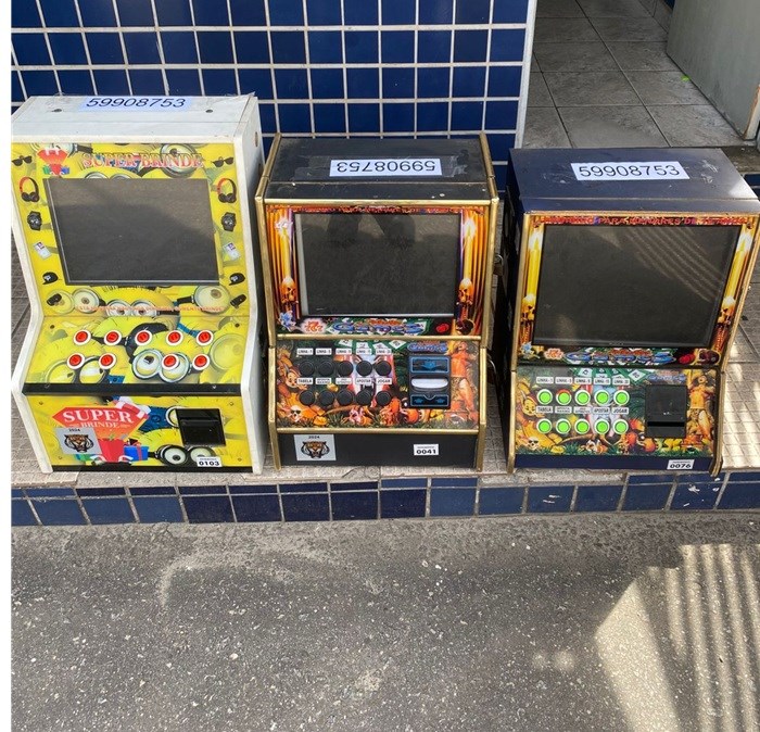 Pela manhã, durante patrulhamento no bairro Aeroporto, os militares receberam denúncia de que em um estabelecimento comercial localizado na Avenida Padre José de Anchieta estaria ocorrendo a exploração de jogos de azar. No local, com apoio da equipe do CPU, os policiais localizaram três máquinas caça-níqueis e quatro máquinas de jogo do bicho. Diante da constatação, todo o material foi apreendido e foi lavrado Termo Circunstanciado de Ocorrência em desfavor do proprietário do estabelecimento, que responderá pelo crime de jogo proibido.