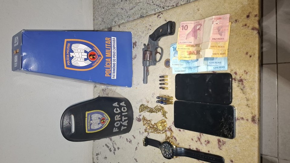 O fato aconteceu após a equipe abordar dois indivíduos em uma motocicleta Honda/CG150, que tentaram fugir em alta velocidade e descartaram um objeto em área de mata. Foi realizada buscas nas redondezas e localizados os suspeitos e os objetos, tratando-se de um revólver calibre 22, oito munições calibre 22, seis munições calibre 38 e dois celulares, todos dentro de uma meia.