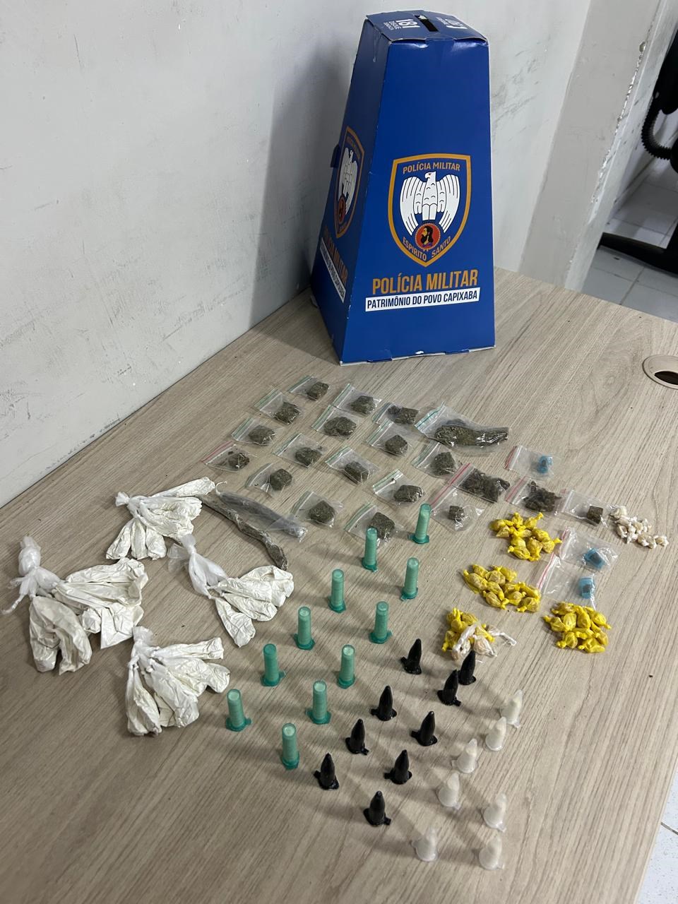 Na sexta-feira (21), a ação ocorreu no bairro Inhanguetá, em Vitória. Durante incursão em área conhecida pelo intenso movimento de tráfico, as equipes lograram êxito em localizar e apreender diversos tipos de entorpecentes já embalados para a venda. Materiais apreendidos: 51 pedras de crack; 31 papelotes de cocaína; 27 pinos de cocaína; 22 buchas de maconha e três pinos contendo Skank.