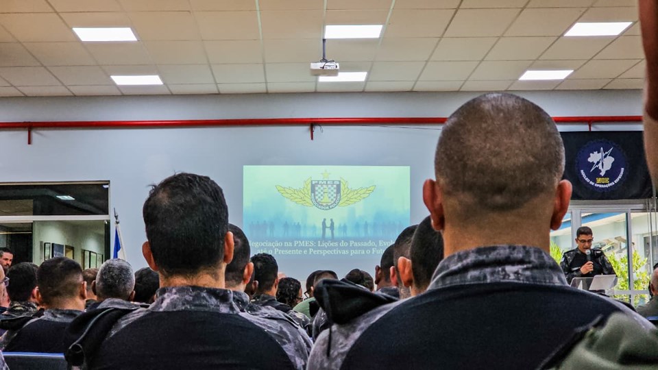 Na ocasião, foi realizada a palestra do major Marcelo Vieira Hollanda, também negociador policial, com a temática: “Negociação na PMES: Lições do Passado, Evolução até o Presente e Perspectivas para o Futuro”, abordando aspectos históricos, a evolução da doutrina de negociação policial na corporação, além dos desafios contemporâneos dessa importante área de atuação.