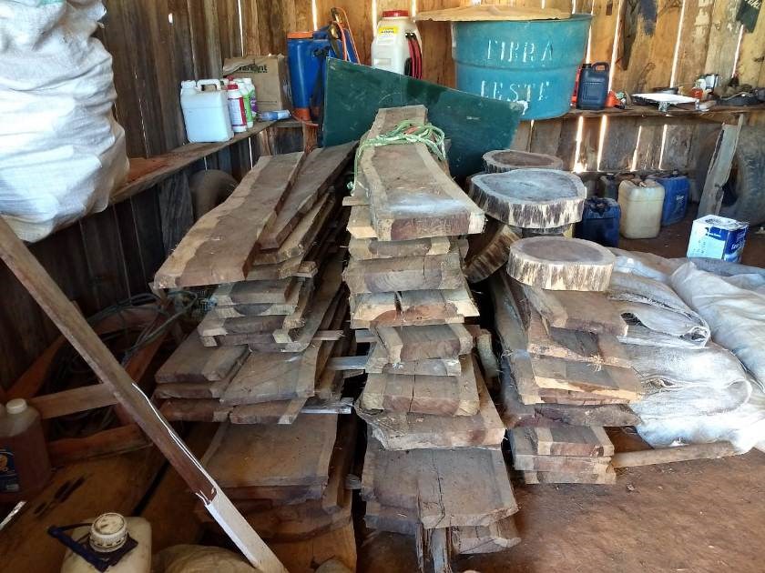 Além de desmatar uma área de 600 m² de vegetação nativa, a proprietária matinha em depósito 1,62 m³ de madeira nativa beneficiada no interior de sua garagem, sem licença do órgão ambiental.