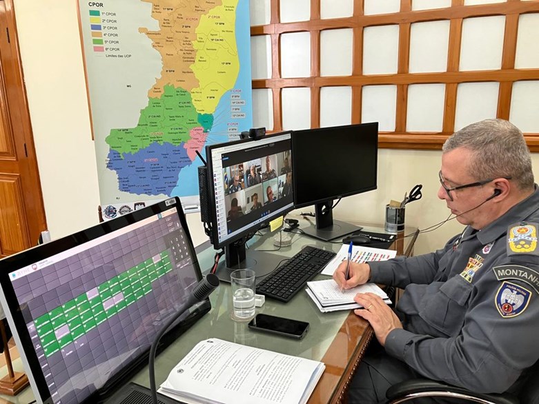 Pela manhã, o coronel Caus se reuniu na sala do Alto Comando da PMES com os comandantes regionais da Grande Vitória e suas respectivas Unidades subordinadas, bem como as Especializadas. Já na parte da tarde, o encontro foi com os comandantes das Unidades do interior do ES por videoconferência.