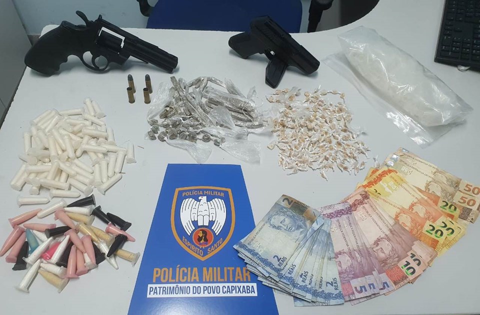 No domingo (14), durante patrulhamento no bairro Solar de Anchieta, militares visualizaram dois suspeitos discutindo dentro de um veículo. Diante do fato foi realizada a abordagem, sendo encontrado no interior do automóvel um revólver calibre 32, com cinco munições e um cigarro de maconha.