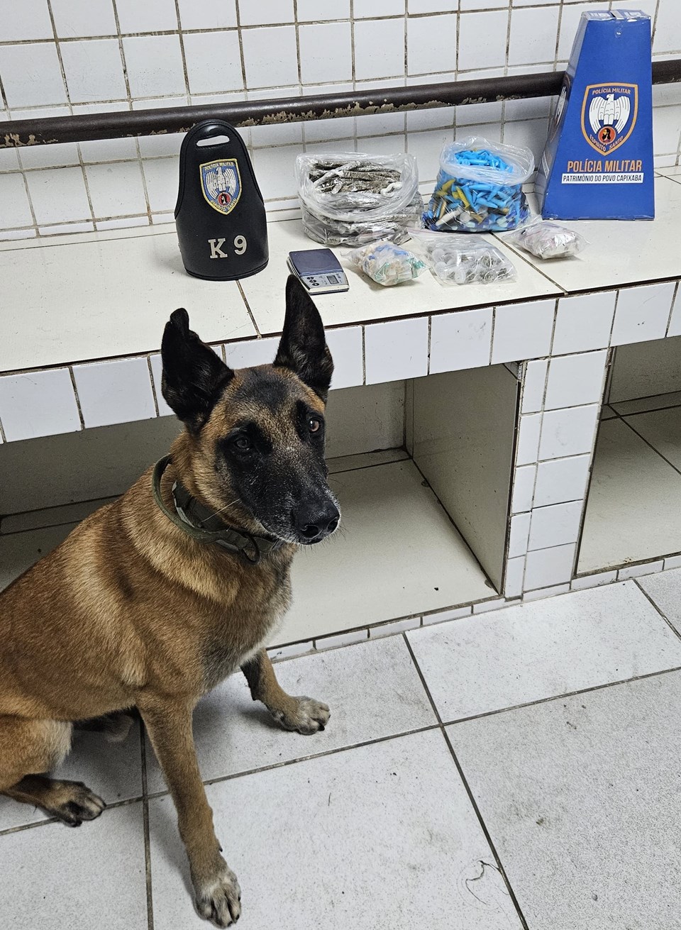 Nesta quinta-feira (08), durante patrulhamento pelos becos e escadarias do bairro Jardim Tropical, no município de Serra, a equipe K9 da Força Tática do 6º BPM obteve êxito na apreensão de entorpecentes.