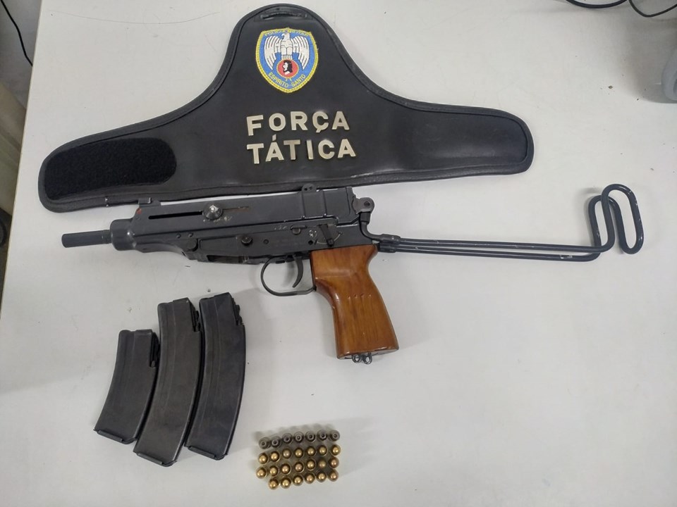 Na terça-feira (17) policiais militares da Força Tática do 6º Batalhão apreenderam uma metralhadora no bairro Campinho da Serra.