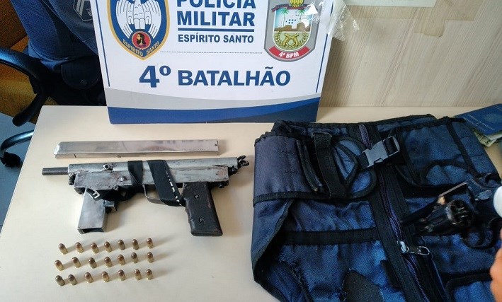 Já outra guarnição, da 3ª Cia do 4º BPM, estava no bairro em apoio na operação, quando se deparam com vários homens armados, que conseguiram se evadir. Durante buscas pelo local, foi encontrada debaixo de uma caixa d’agua, em um terreno baldio, uma submetralhadora, contendo 21 munições calibre 380 e um colete balístico.