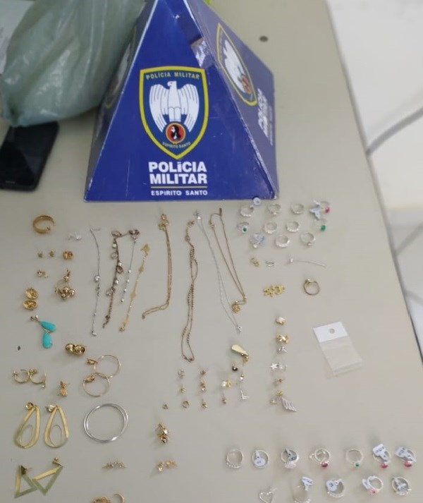 Parte dos materiais foram recuperados na residência da namorada de um acusado, em Iúna. Os militares recolheram 11 anéis de cor prata e um par de brincos de cor prata. O restante do material foi encontrado em outras residências, sendo 19 pares de brincos, quatro pulseiras, quatro cordões, 11 anéis, sete pingentes e mais 17 brincos.