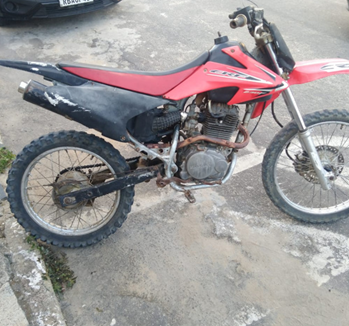 Os militares visualizaram um suspeito a bordo de uma motocicleta Honda NXR 125 Bros de cor vermelha, na localidade de Boa Vista, em Marataízes, e efetuaram abordagem. Após consulta junto ao sistema COPOM, constataram restrição de furto/roubo da motocicleta.