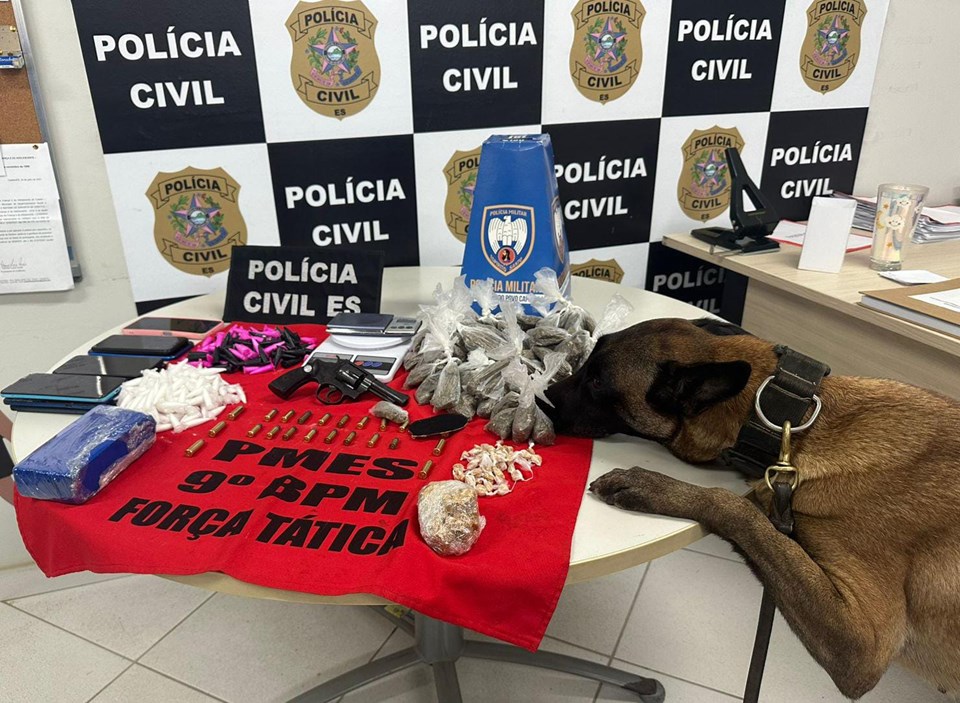 Os materiais apreendidos e a pessoa detida foram encaminhados à Delegacia de Polícia Civil de Castelo, onde o caso segue sob investigação.