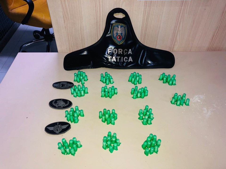 Em outra ação na noite de segunda-feira (13), militares da Força Tática patrulhavam em forma de saturação o bairro Dom João Batista quando perceberam um jovem em atitude suspeita à beira mar. Eles tentaram a abordagem, mas o rapaz conseguiu fugir, largando para trás a sacola que estava carregando.
