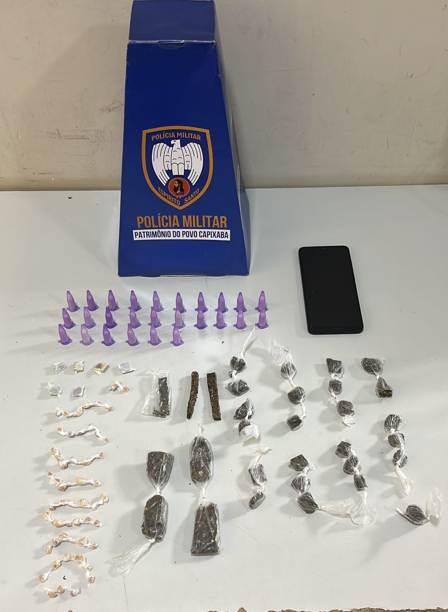 Na Avenida Beira-Mar, bairro Praia do Morro, um adolescente foi apreendido após indicar aos policiais o local onde havia escondido entorpecentes. No total, foram apreendidas 54 pedras de crack, seis unidades de pack, 28 buchas e três tiras de maconha, além de 26 pinos de cocaína.