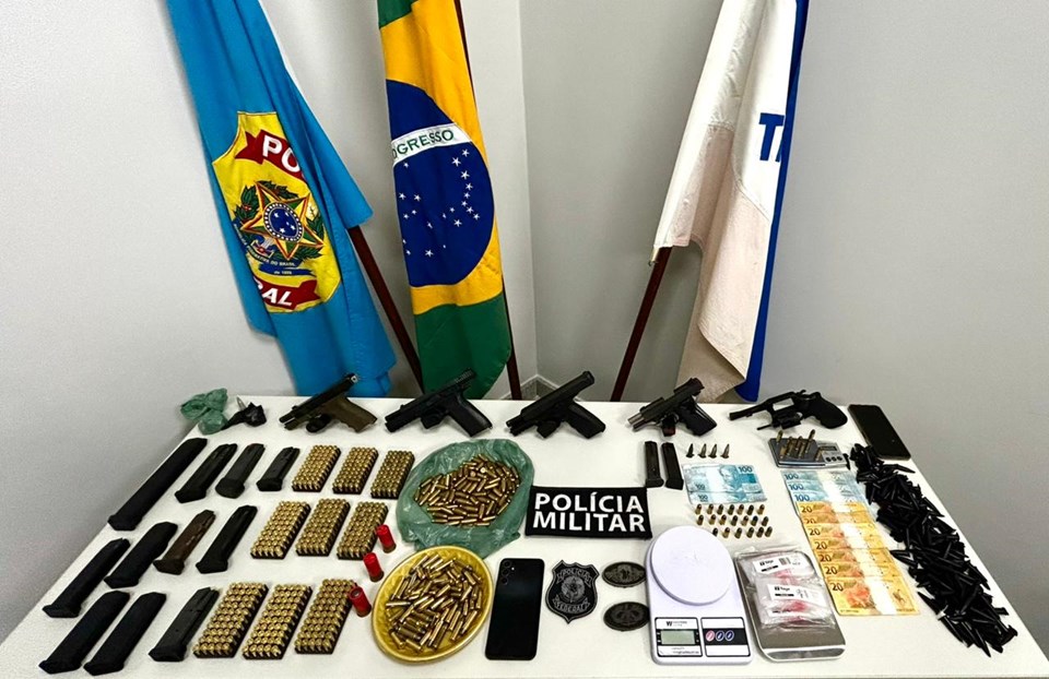 A operação resultou também na apreensão de quatro armas de fogo: duas pistolas 9mm, uma pistola .40 e um revólver calibre 38. Além das armas, foram apreendidos 16 carregadores e 618 munições de diversos calibres (sendo 215 de 9mm, 259 de 380, 36 de 38, 105 de 40 e três de 12). No que tange às drogas, foram retirados de circulação 161 pinos de cocaína, uma porção de crack e uma porção de cocaína.