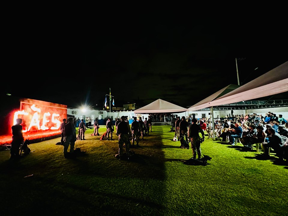 A Polícia Militar, por meio do Batalhão de Ações com Cães (BAC), realizou na noite desta terça-feira (30) a solenidade de formatura do X Curso de Cinotecnia Aplicada às Operações com Cães. O evento, realizado na sede do BAC, contou com a presença do comandante-geral da PMES, coronel Douglas Caus, do comandante do CPOE, coronel Alexandre Moreto da Silva e do comandante do BAC, tenente-coronel Luciano Nunes Buzim. Familiares e amigos dos formandos também prestigiaram o momento de celebração, além de outras autoridades civis e militares.