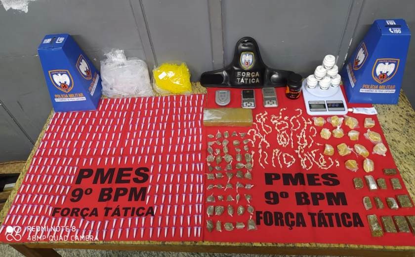 Policiais militares da Força Tática apreenderam, na última sexta-feira (11), entorpecentes no bairro Monte Belo, em Cachoeiro.