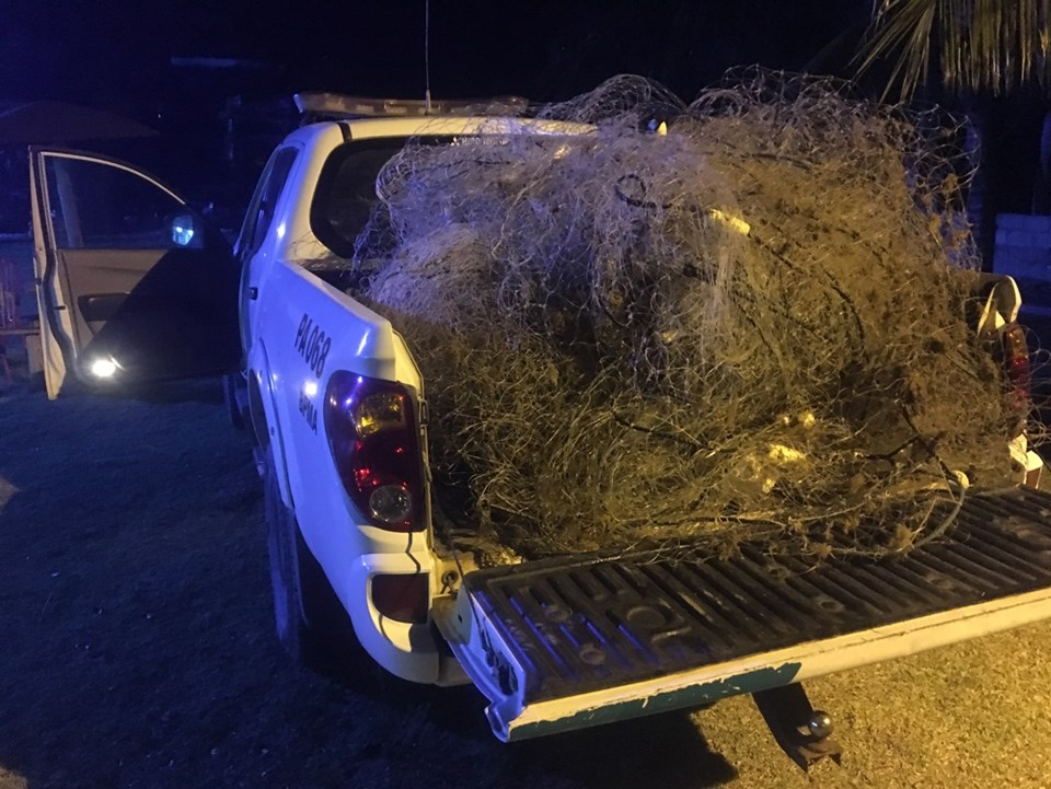 Ao chegar à zona de confluência do rio Cricaré com o mar, no município de Conceição da Barra, deparamos com várias redes de pesca na modalidade armada em local proibido. Foi realizado o recolhimento do material que, ao ser mensurado, foi constatado o total de 600 metros lineares de rede, com a malha medindo entre 10 e 17 centímetros.