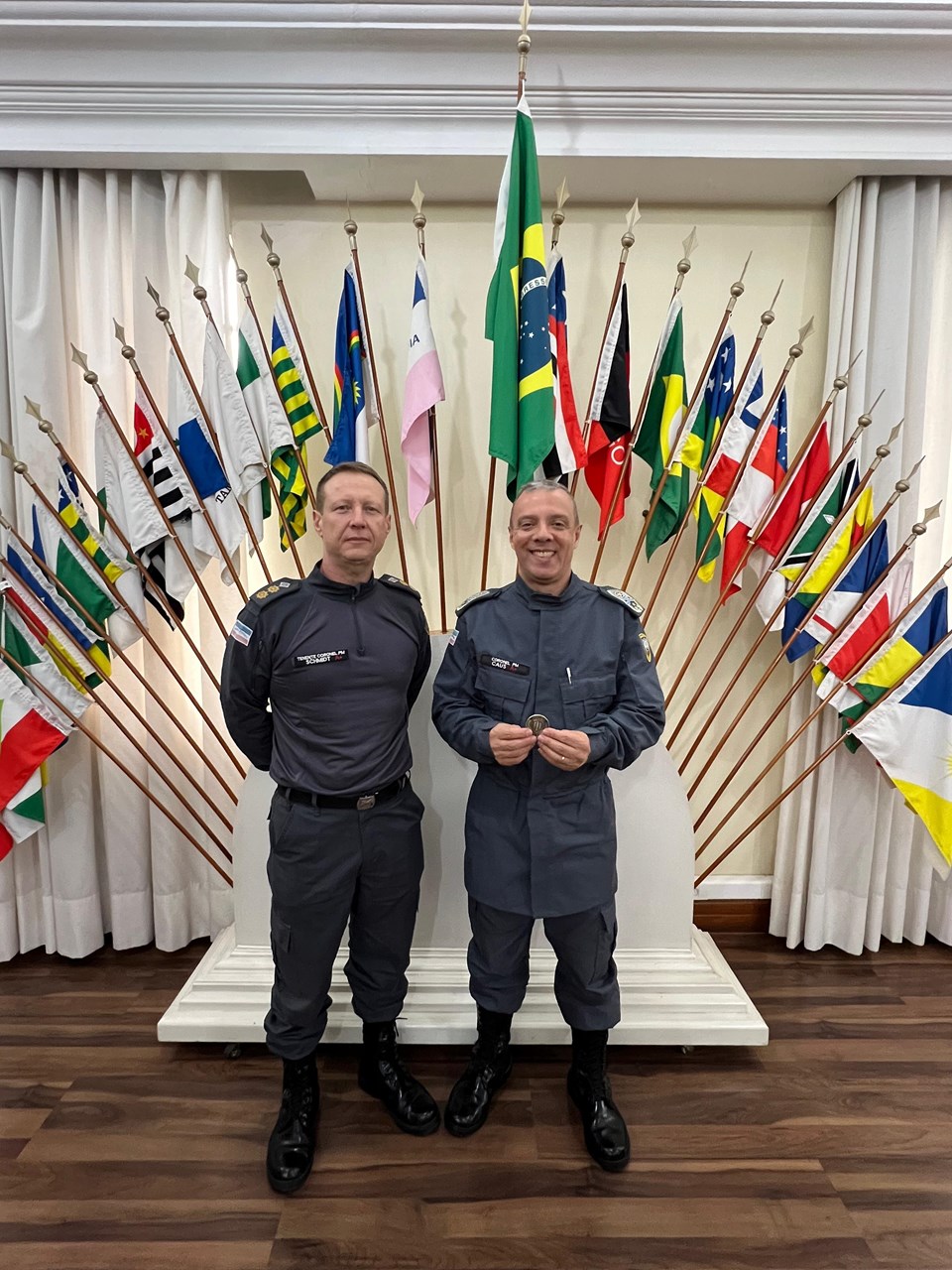 Como parte das comemorações, o tenente-coronel Schmidt esteve no gabinete do comandante-geral da PMES para apresentar a moeda comemorativa alusiva aos 30 anos da turma, gesto que simboliza o reconhecimento à trajetória construída e o fortalecimento dos laços institucionais.