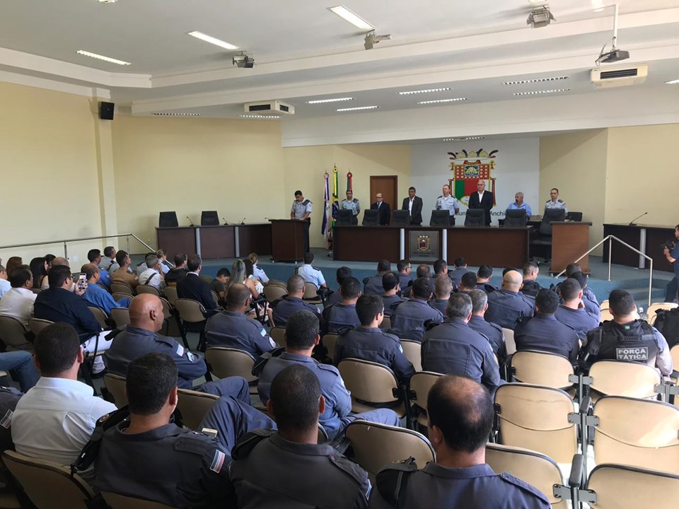 Já nesta segunda-feira (08) foi realizada a “Solenidade do 9º Aniversário da 10ª Companhia Independente”, que aconteceu no plenário da Câmara Municipal de Anchieta e contou com a presença de autoridades civis e militares, destacando-se a presença do Sr. Deputado Estadual Alexandre Quintino, Sr. Juiz de Direito da Comarca de Alfredo Chaves Arion Mergár e o Sr. Cel RR Leonardo Marchezi.