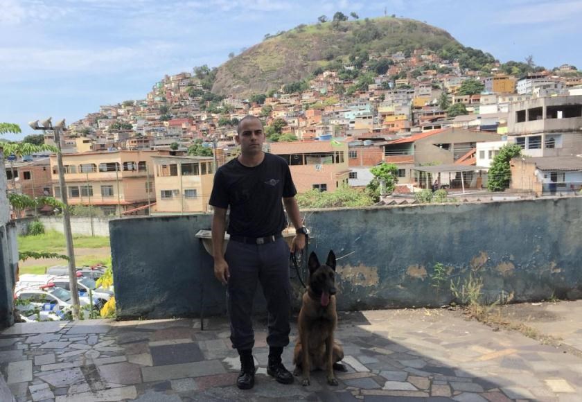 Os soldados Márcio Lopes e Romeiro passaram pelo treinamento durante seis semanas e estão aptos a conduzir o cão policial Kênia, da raça Pastor-belga Malinois de quatro anos de idade. Ele passou por intensos treinamentos desde filhote e é capaz de farejar armas e drogas.