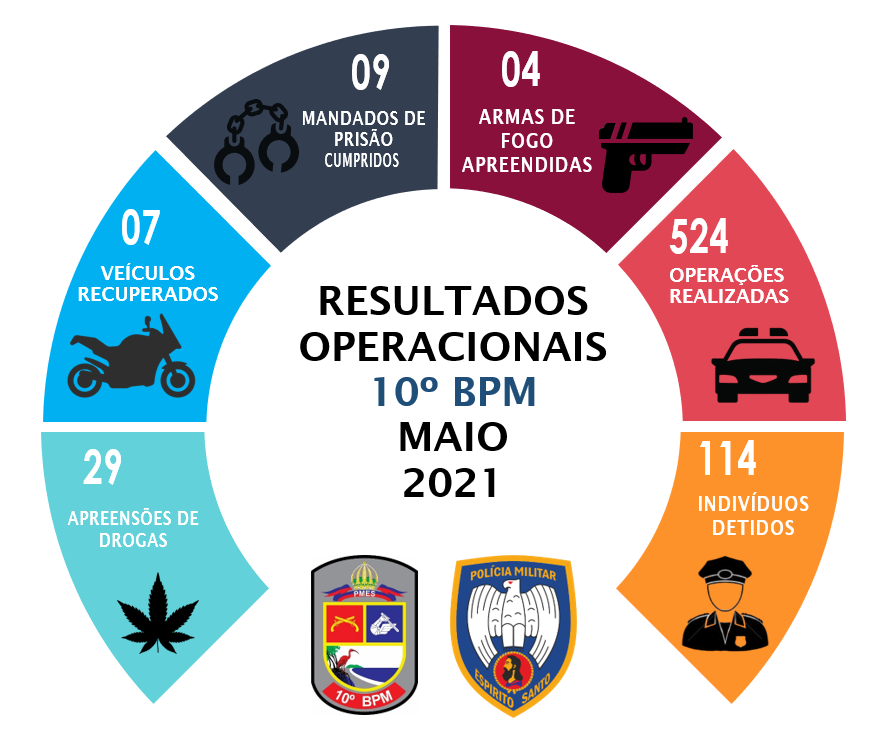 O 10º Batalhão, Unidade da PMES responsável pelo policiamento em Guarapari, divulgou nessa terça-feira (02) os resultados operacionais obtidos durante todo o mês de maio.