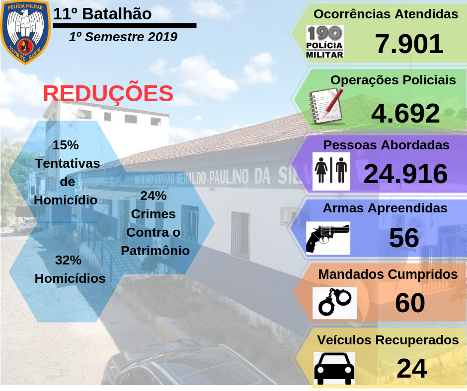 Durante o 1º semestre de 2019, o 11º Batalhão realizou diversas ações policiais de prevenção e repressão qualificada, que culminaram em resultados positivos para a população dos cinco municípios que compõem a Unidade Operacional.