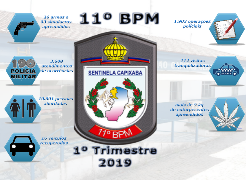 O 11º Batalhão da Polícia Militar divulgou nesta quarta-feira (10), os resultados da atuação da Unidade nos três primeiros meses de 2019. Com sede em Barra de São Francisco, a Unidade Operacional atende também os municípios de Água Doce do Norte, Águia Branca, Ecoporanga e Mantenópolis.