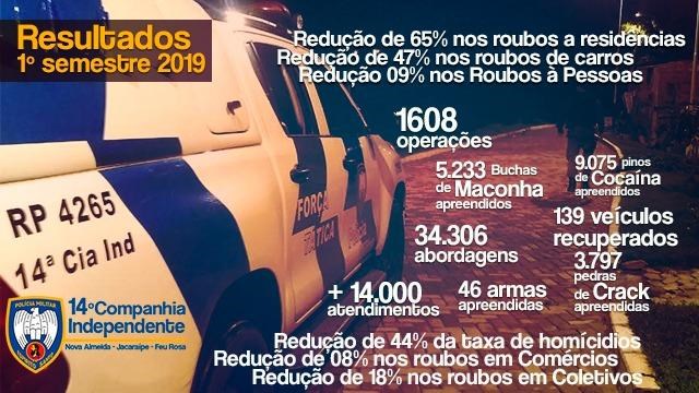 Por fim, o comandante destacou que os resultados mostram uma expressiva diminuição nos índices criminais, incluindo uma redução de 44% dos homicídios, o que representa 16 vidas preservadas.