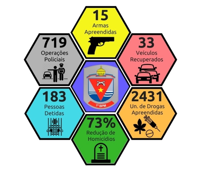 “Este resultado só foi alcançado graças ao empenho dos policiais militares do 1º BPM, nas operações realizadas em pontos estratégicos do município de Vitória e ao trabalho integrado com o CPO-E por via da Companhia Independente de Missões Especiais (CIMEsp) e Companhia Especializada de Operações com Cães (CEOC), e da colaboração da Guarda Municipal de Vitória (CGM), da Polícia Civil (DETEN, Delegacia de Segurança Patrimonial e Delegacia de Crimes Contra Vida) e da comunidade parceira, na indicação de locais para a realização dessas ações”, destacou o comandante da Unidade.