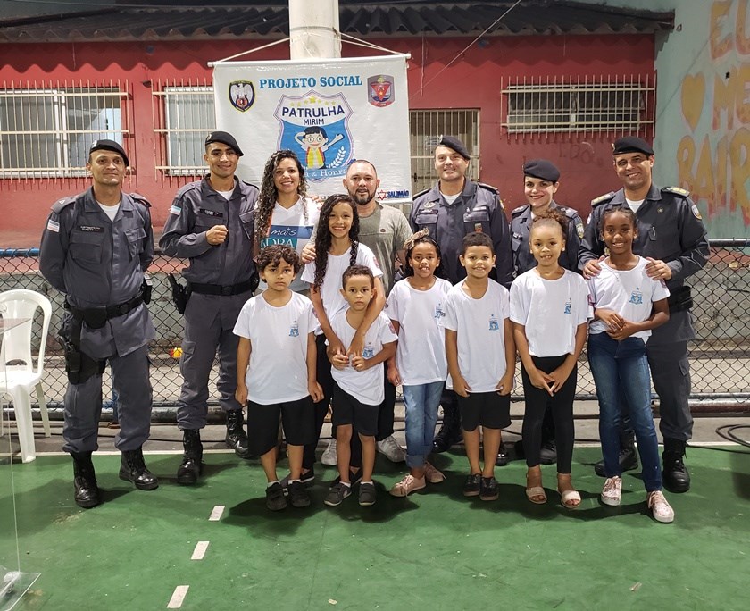 Nesta segunda-feira (11), o 1º Batalhão realizou a aula inaugural do projeto cívico-social Patrulha Mirim no bairro Andorinhas, em Vitória. Mais de 60 crianças e adolescentes aderiram ao projeto e participaram da solenidade, acompanhados por seus familiares e moradores do bairro.