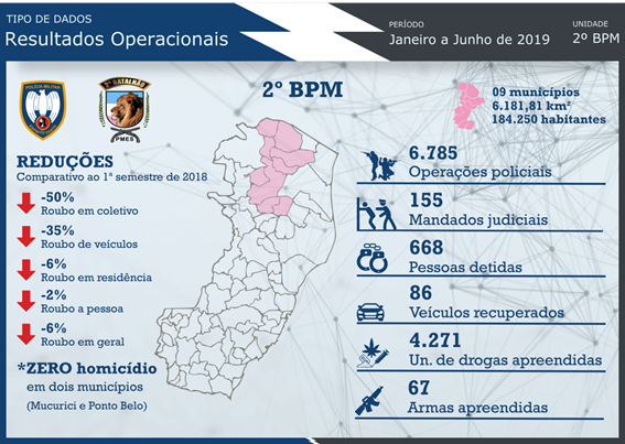 Segundo o comandante da Unidade, tenente-coronel Mario Marcelo Dal Col, este resultado só foi alcançado graças ao empenho de todos os policiais militares do 2º BPM, que integram os municípios de Nova Venécia, Vila Pavão, Pinheiros, Boa Esperança, São Gabriel da Palha, Vila Valério, Montanha, Mucurici e Ponto Belo.