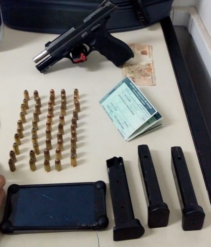 Também no domingo, durante patrulhamento no bairro Caçaroca, militares abordaram um veículo que era conduzido por um indivíduo que, após ser feita busca pessoal foi encontrado uma pistola marca Taurus calibre 380, com numeração raspada, quatro carregadores, além de 50 munições calibre 380 intactas. O indivíduo e o material apreendido foram encaminhados a Delegacia de plantão.