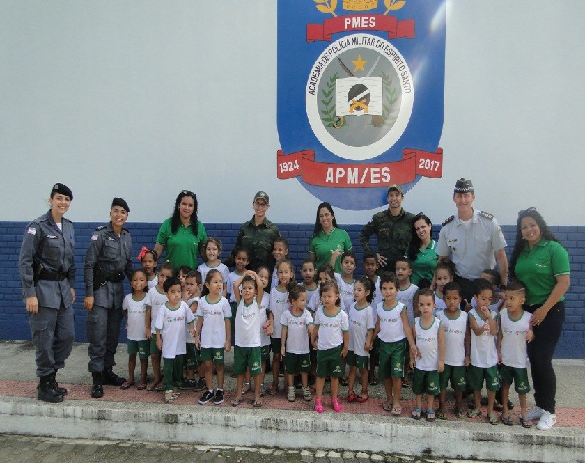 Acompanhados de professoras e da coordenadora Gledes Zeny, o evento foi alusivo ao Dia do Soldado e as crianças puderam aproximar-se da Polícia Militar a fim de desenvolver um relacionamento amigável entre eles e a Corporação.