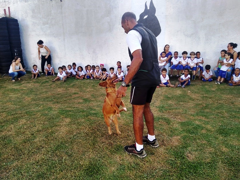 Na tarde de ontem (29) mais de 30 crianças entre 3 e 4 anos de idade do CMEI “Silvanete da Silva Rosa Rocha”, do bairro Condusa, em Vitória, visitaram as dependências da Companhia Independente de Operações com Cães (Cioc).