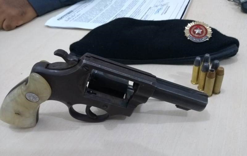 Durante patrulhamento preventivo nas proximidades do Bairro Parque Washington, os policiais militares avistaram dois suspeitos a bordo de uma motocicleta CG de cor vermelha, que ao perceberem a viatura realizaram manobra brusca e seguiram destino Guriri. A guarnição realizou o acompanhamento pela Rodovia Otovarino Duarte Santos até o início do bairro Pedra D'Água, e durante o trajeto observaram que o carona da motocicleta arremessou um objeto em um matagal. Os indivíduos foram alcançados e após abordagem, foram identificados como sendo o carona P.A.T, de 19 anos e o condutor da motocicleta como L.M.O, de 20 anos. O objeto dispensado foi um revólver calibre 38, municiado com seis munições de mesmo calibre.
