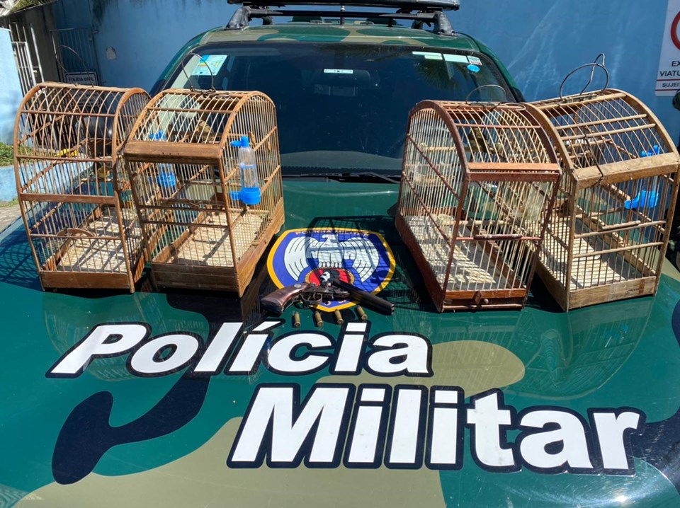 Nesta sexta-feira (09), militares do Comando de operações táticas em Mata Atlântica (COTAMA), apreenderam uma garrucha cal. 38, quatro munições e quatro pássaros da fauna silvestres mantidos em cativeiro sem licença ou autorização.