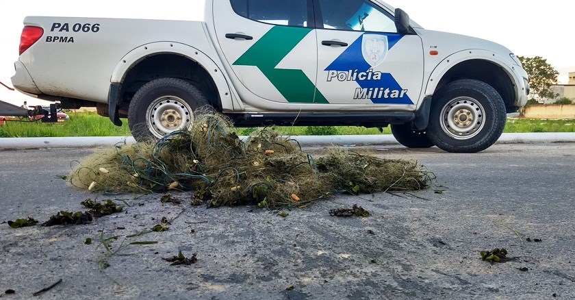 O comprimento da rede esticada ultrapassava 1/3 da largura do ambiente aquático, uma modalidade de pesca proibida que configura o crime ambiental. No local não foram localizados os responsáveis pelo material.