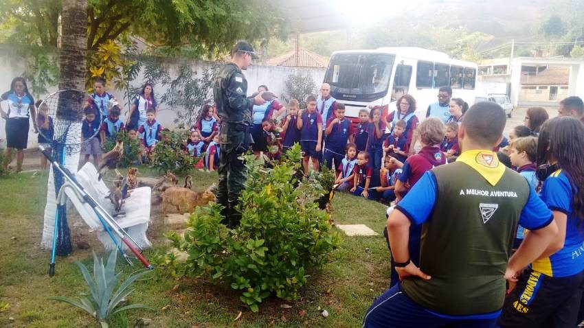 Os sessenta participantes entre alunos e monitores, visitaram a unidade para conhecer um pouco mais o trabalho da Polícia Ambiental, também lhes foi apresentada a estrutura física da unidade, viaturas e embarcações utilizadas no policiamento, além da ministração de palestra com apresentação de animais taxidermizados, vídeos e simulação de manejo e contenção de animais silvestres.