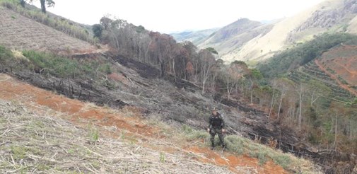 As equipes do BPMA da região do Caparaó e o IDAF de Guaçuí constataram duas áreas de vegetação nativa da Mata Atlântica desmatadas, na zona rural dos municípios de Dores do Rio Preto e Guaçuí, totalizando juntas 106.400 m², o que equivale mais de 10 campos de futebol.