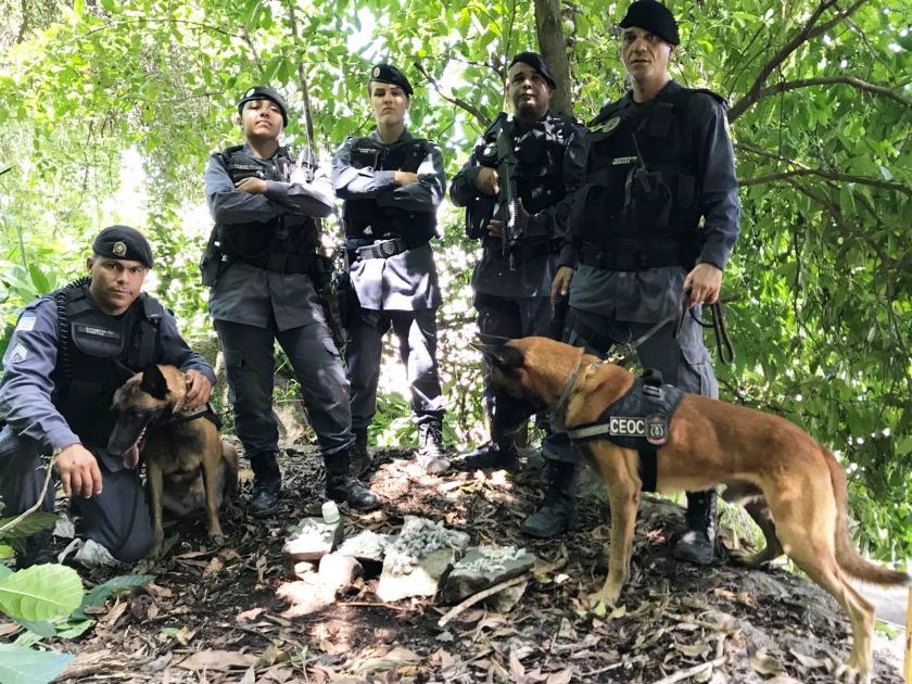 Neste domingo (01), as equipes da Companhia Especializada de Operações com Cães (Ceoc) realizaram a apreensão de grande quantidade de material entorpecente com o auxílio de cães farejadores. A droga foi encontrada no bairro Moscoso, em Vitória.
