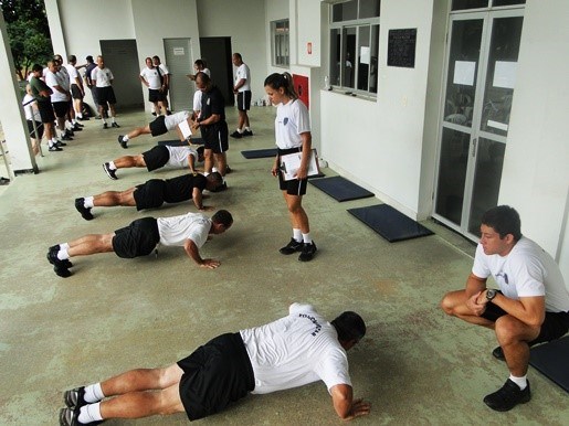 Somente poderão realizar o TAF os candidatos que estiverem devidamente uniformizados com a farda de educação física (D-1). No momento das provas de corrida, o candidato poderá usar tênis de qualquer cor.