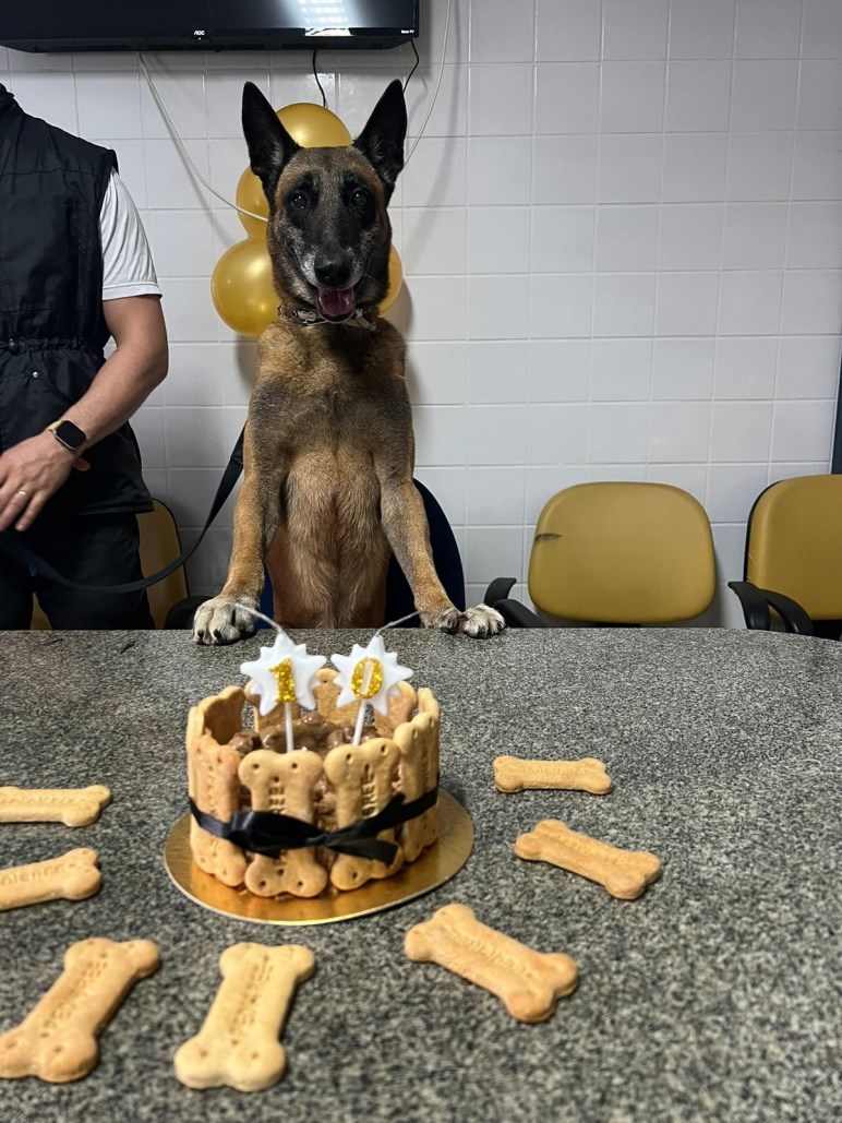 Nesse sábado (28), Eudis, cão policial especialista em faro de armas e drogas, completou 10 anos. Conhecido como “a Lenda”, foi adquirido pela Polícia Militar do Espírito Santo no início do ano de 2014, passou por um treinamento intensivo e em apenas 45 dias já estava atuando em situações reais. Da raça Pastor Belga de Malinoi e com uma excelente linhagem, é pai de alguns valorosos cães, também atuantes na segurança pública capixaba.