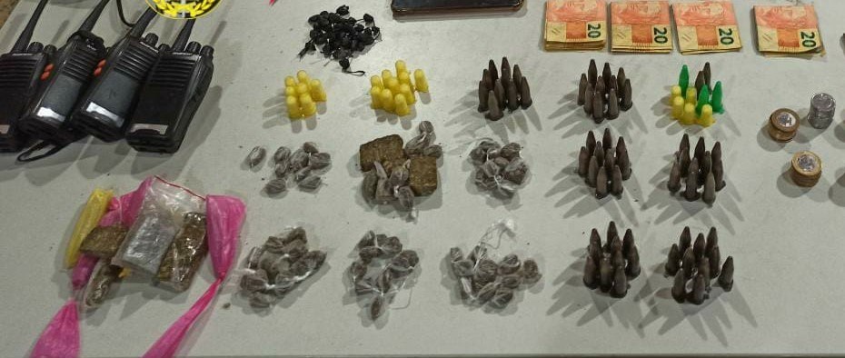 Durante buscas pelo local onde os suspeitos fugiram, foram encontrados mais três rádios comunicadores, uma base de carregar rádio, uma sacola contendo 37 pedras de crack e 70 buchas de maconha.